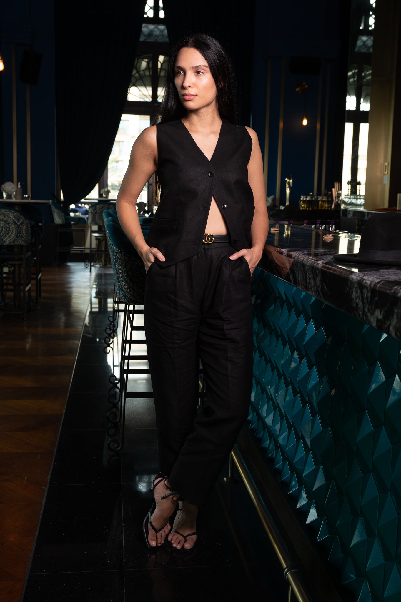 - Classic linen trousers for women